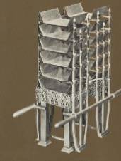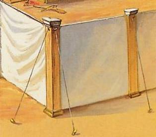Pour le parvis, les bases des piliers étaient d’airain, et les crochets et baguettes d’attache étaient en argent, les chapiteaux plaqués d’argent (Exode 38:17, 28). Deux représentations sont données ici ; la deuxième est plus précise, mais les crochets devraient être de la même couleur que les chapiteaux.