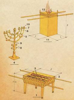 Vue d’ensemble — Le parvis — Les vêtements du Souverain Sacrificateur — Le Lieu Saint — Les couvertures — Structure du Tabernacle — Le Lieu Très-saint — Le camp et son ordre de marche — Dénombrements du peuple au début et à la fin du désert