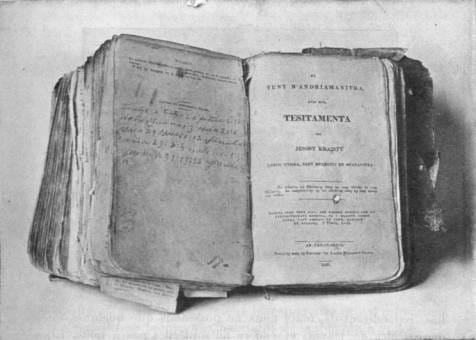 Des exemplaires de la Bible furent remis aux indigènes. Ceux qui les recevaient savaient fort bien qu'en les recevant ils risquaient leur vie. Quand les missionnaires, expulsés, quittèrent l’île, en juillet 1836, il restait encore un stock de soixante-dix Bibles. Les missionnaires enterrèrent ces soixante-dix Bibles et en indiquèrent la cachette à quelques-uns de leurs convertis. Ce fut là, pour de longues années, le dépôt biblique des chrétiens malgaches. Ces Bibles, comme on l'a dit, furent le combustible qui, pendant plus d'un quart de siècle de persécution, alimenta le feu sacré à Madagascar. Plusieurs de ces Bibles existent encore. On en voit une à la bibliothèque de la Société biblique britannique.