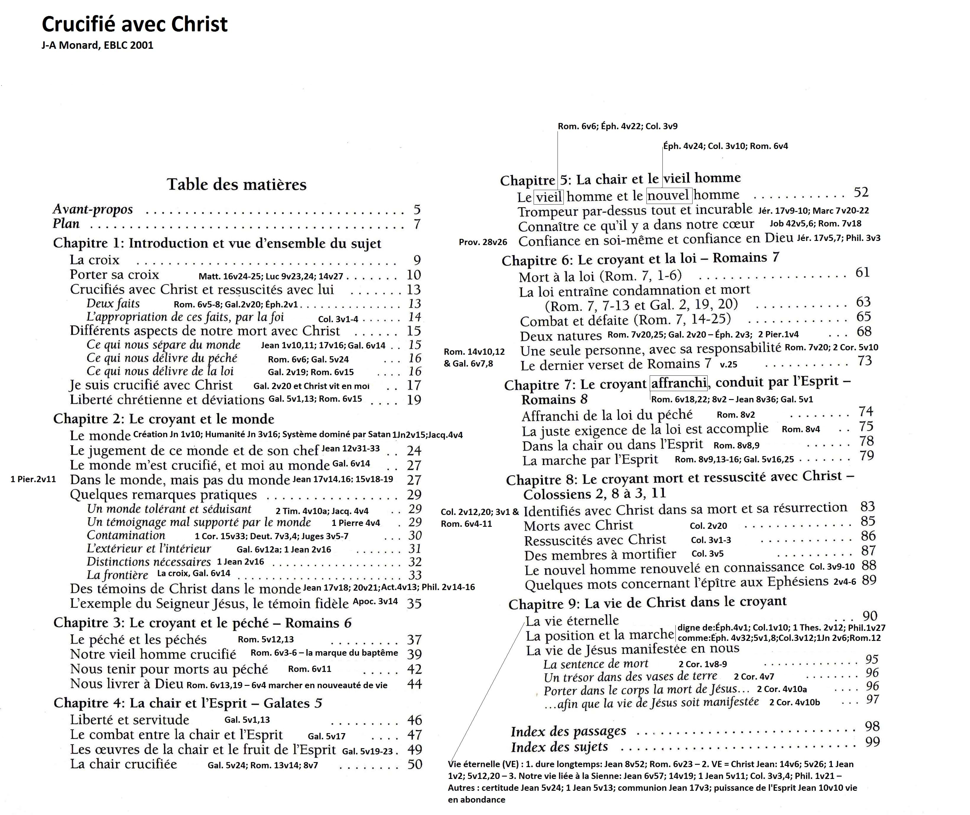 Affranchissement : La table des matières de « Crucifié avec Christ » complété par les versets mentionnés à chaque rubrique